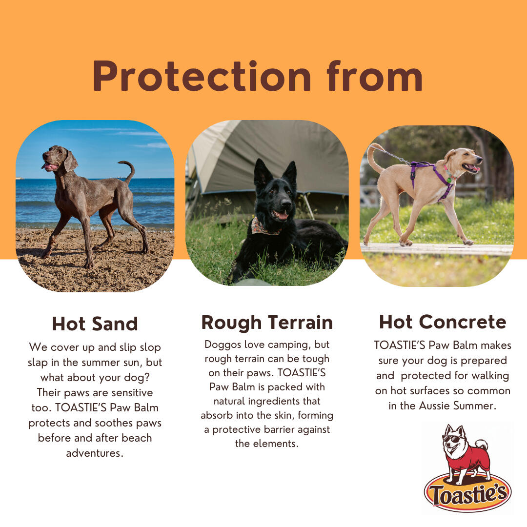 Protect your dogs paws from Australia’s harsh heat and rough terrain with our Paw Protection Balm!